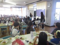 給食委員会主催の青団の色団会食が行われました。縦割り班の友達と一緒に話しながら...