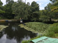 午後からは、ターザンローブやいかだ等の池遊びを楽しみました。「みんな!池に落ち...