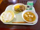 今日の給食は、ごはん、牛乳、ビビンバ(焼き肉、ナムル、錦糸卵)、中華スープです...