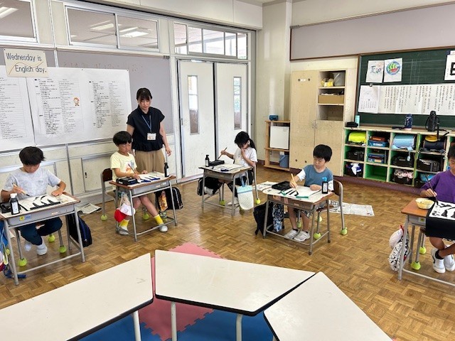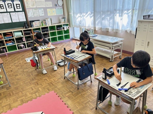 3年生は書写で「はらい」の練習をしました。太さの違う線、少しずつ太くなる線、少しずつ細くなる線の練習をして「はらい」につなげました。きれいな三角の線の形になるよう集中して練習していました。