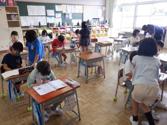 2年生は算数科で繰り下がりの引き算の練習をしていました。友達同士教え合いながら、正しく早く計算できるよう練習しています。