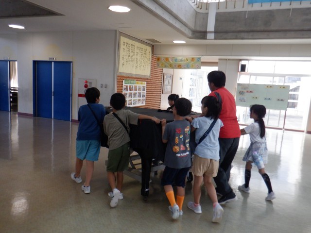 毎日音楽会に向けて練習をしている2、3年生です。今日は出入りの練習もしました。3年生はいつも練習後にピアノの片付けもしてくれています。