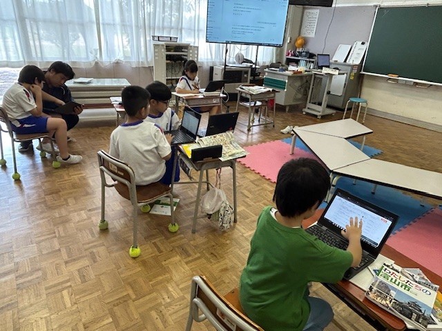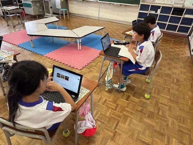 3年生は社会科でスーパーマーケットの工夫について調べています。休憩所のことや、「地産地消」の意味等を調べ、お客さんのためにある様々な工夫について考えていました。