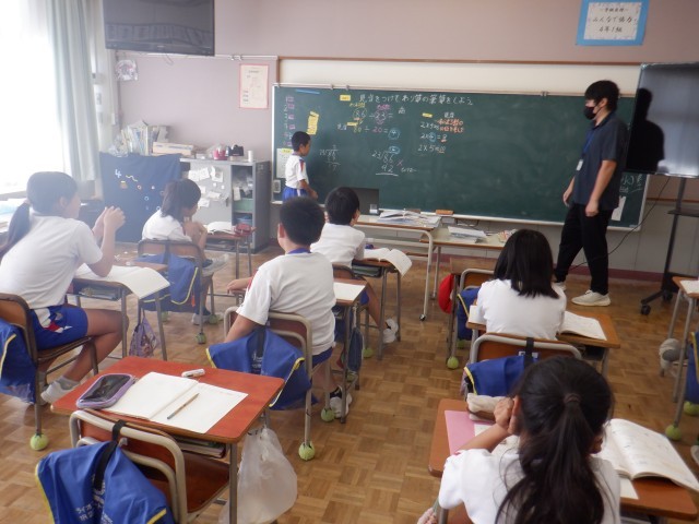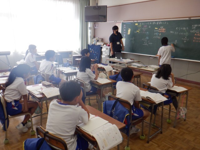 4年生は算数科で割り算の筆算を学習していました。初めて2桁わる2桁の筆算にちょうせんです。見当を付けて商を立てていく練習を繰り返ししていました。
