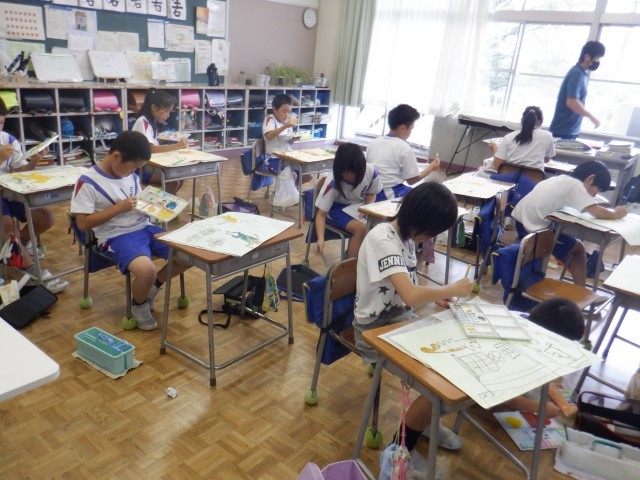 9月25日(木)4年生 今日の授業風景(物語の絵)