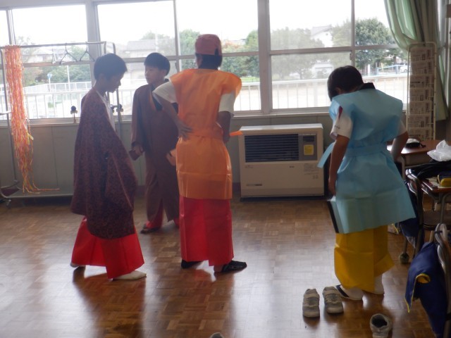 6年生は学習発表会用の衣装合わせをしていました。実際に衣装を着て練習をすると、気持ちの入り方が違います。