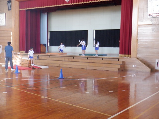 4年生は学習発表会の練習をしていました。劇も交えながら、マット運動と跳び箱運動の発表をするので、劇とマット・跳び箱の練習をしています。