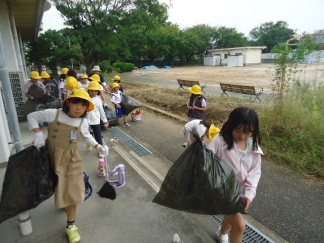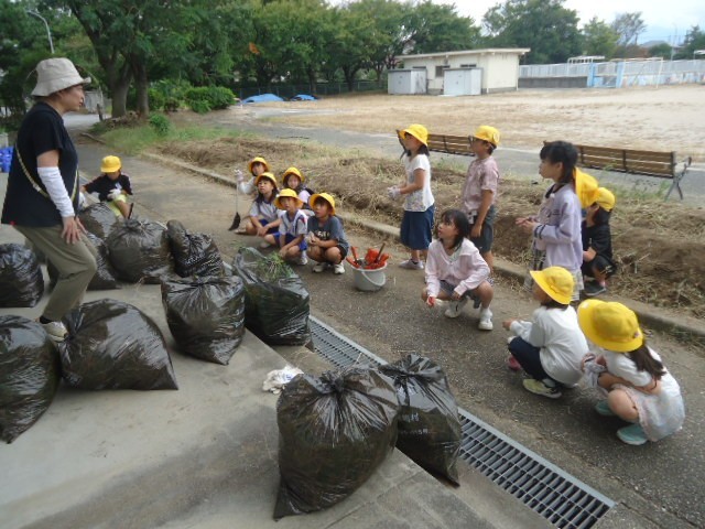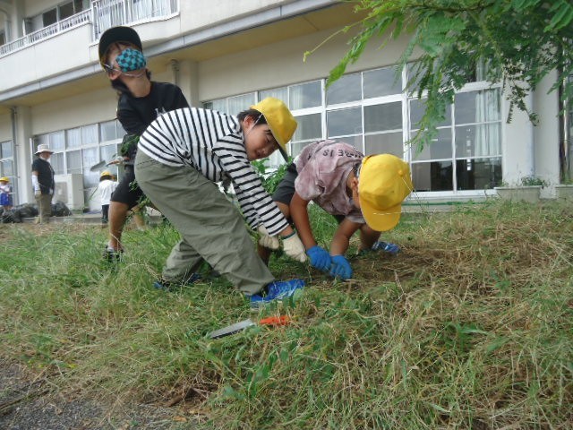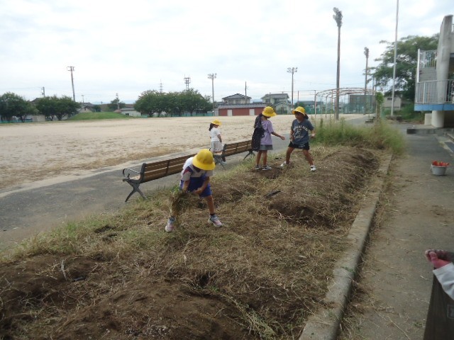 夏の間まで、たくさんの野菜を収穫させてくれた畑に感謝しながら「畑じまい」を行いました。一番たくさん草をとった班には、いいことがあったようです。