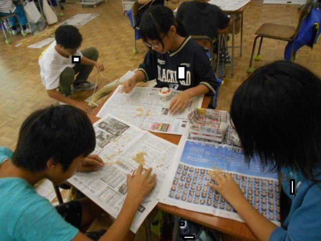 湯呑を使って、一粒一粒を大切にしながら作業をしました。