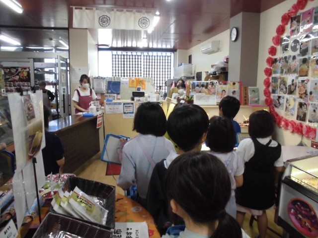 今日は2回目の町探検でした。四方の海や漁港を見たり、黒作りで有名な蝦米さんや細工かまぼこが素敵な四方かまぼこさんを見学したりしてきました。最後には四方の町のケーキ屋さん「パティスリーナオ」さんにも行ってきました。おいしいチョコやシュークリームの試食もさせていただき、「四方のすてき」がたくさん見つかりました。