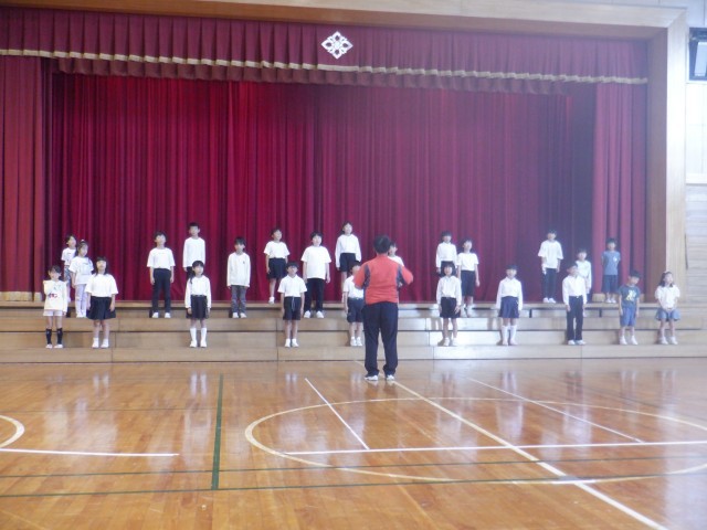 1、2、3年生は明日の敬老会で歌の発表をします。「あいあい」「うたえバンバン」「ゆうき」の3曲を歌います。子供たちの元気を地域の皆さんにも届けられるのが楽しみです。