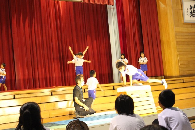 10月15日(水)校内発表会② 公開日 2025/10/15 更新日 2025/10/15 行事・その他 休憩をはさんで後半は、4年生の一人一人の演技が光る器械運動、6年生の児童手づくりによる見応えある歴史劇、全校合唱「みんなの町 四方」が披露されました。終わりの言葉では6年生が各学年に発表のすてきを伝えるなど、保護者、地域の方々にも見ていただき、子供たちは自分や友達のよさをたくさん見付けたようです。 +1