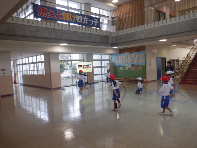 10月16日(木)1年生 今日の授業風景(フラフープ遊び)