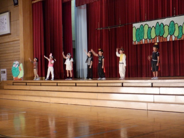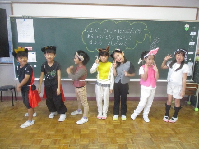 今日は、子供たちの頑張る姿を見に来ていただき、ありがとうございました。これまで練習してきた「うたのきらいな王さま」の音楽劇、子供たちはみんな、大きな声でせりふを言い、歌を歌ったと思います。多くの拍手をもらって、うれしそうな子供たちでした。