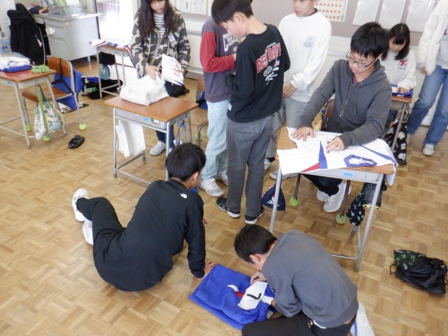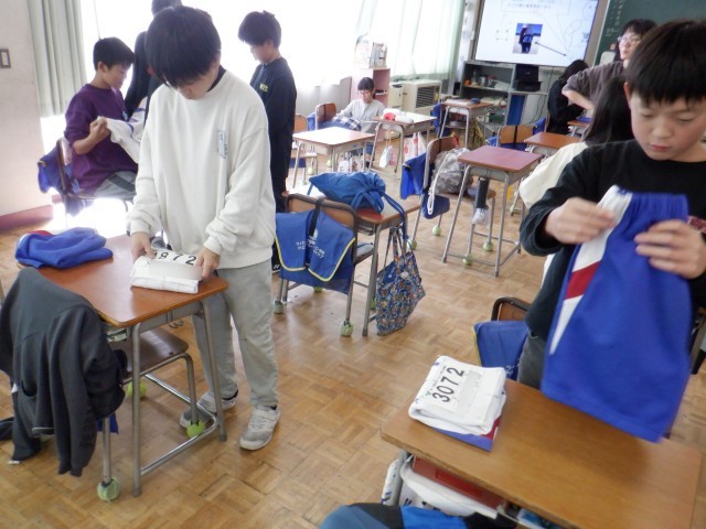 6年生は9日にチャレンジ陸上があります。今日は体操服にゼッケンをつけて準備をしていました。ゼッケンが折れ曲がらないように丁寧にたたんで片づけていました。