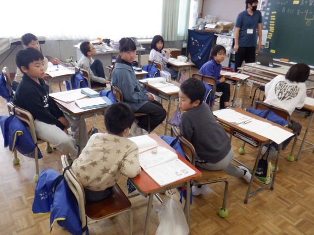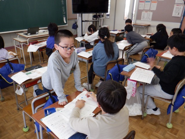 4年生は算数科でたし算、ひき算、かけ算、わり算が混じった計算の仕方について考えていました。どの順序で計算するかが大切になるこの学習で、友達と計算のやり方を比べたり、説明しあったりして互いに学び合っていました。