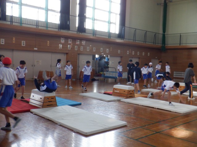 6年生は体育科で跳び箱運動をしていました。台上前転の練習をしていましたが、低い段から少しずつ高さを上げていくことで、怖がらず安心して練習に取り組んでいました。