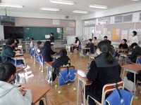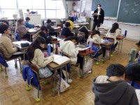 ご飯を炊くときは火加減や蒸らす時間等に気を付けました。みそ汁づくりでは、固い食材から煮ることや味噌を入れるタイミング等に気を付けて調理しました。自分でつくったご飯やみそ汁はやはりおいしいようで笑顔を見せながら食べていました。どのグループも完食することができました。