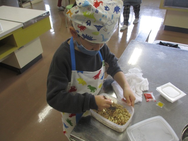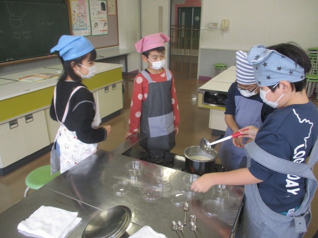 3年生の総合的な学習の時間のテーマは「姿をかえる大豆」です。今日は、自分が関心のあるものを選び、調べた手順で豆腐と納豆をつくりました。大豆が本当に姿をかえることができるのか、結果が楽しみです。