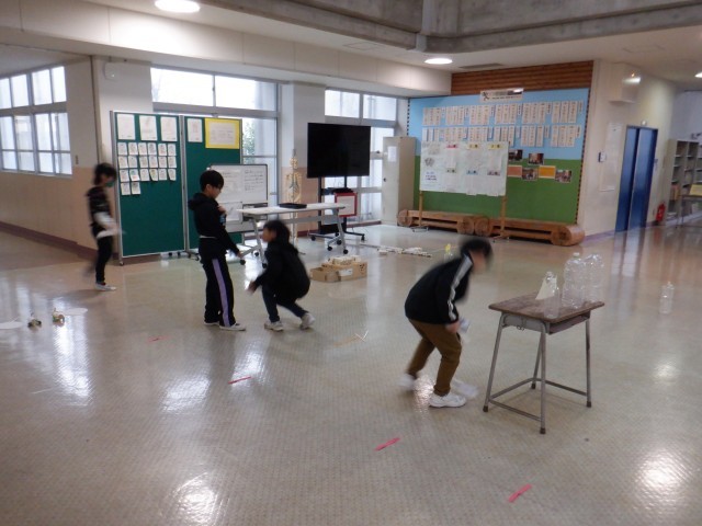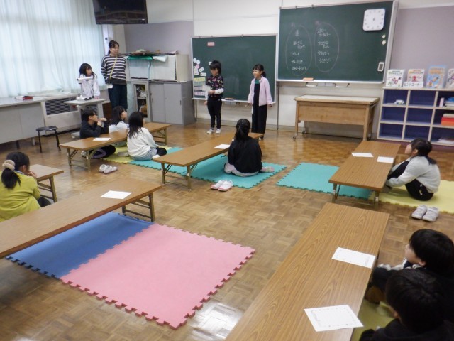 2年生は生活科でつくったおもちゃを、1、3年生に遊んでもらうおもちゃランドの準備をしていました。おもちゃランドの説明や、遊び方の説明等実際に2年生役と1、3年生役に分かれて練習していました。