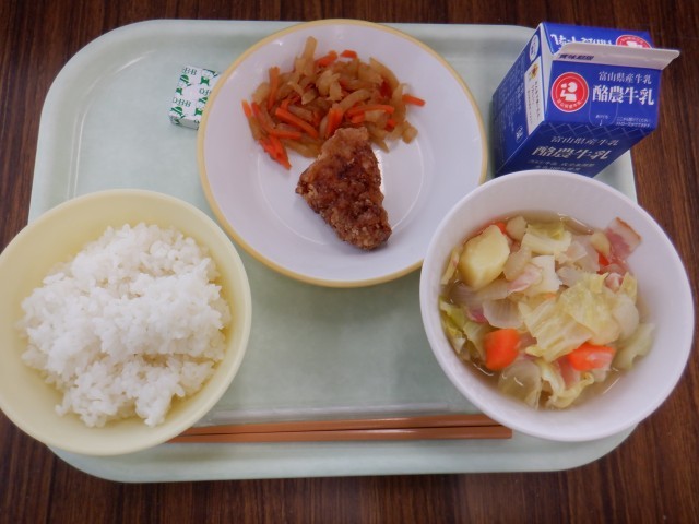 3学期最初の給食でした。調理員さん、今年もおいしい給食よろしくお願いします。