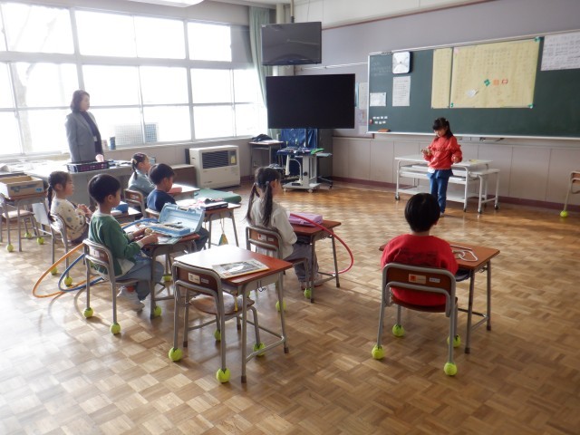 学習参観に来ていただき、ありがとうございました。生活科「できるようになったよ発表会」で、一人一人がこれまで頑張ったことを発表しました。また、みんなで、トーンチャイムや大縄跳びをしました。百人一首では、家の方も参加してくださり、子供たちはとても嬉しそうでした。