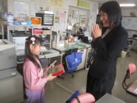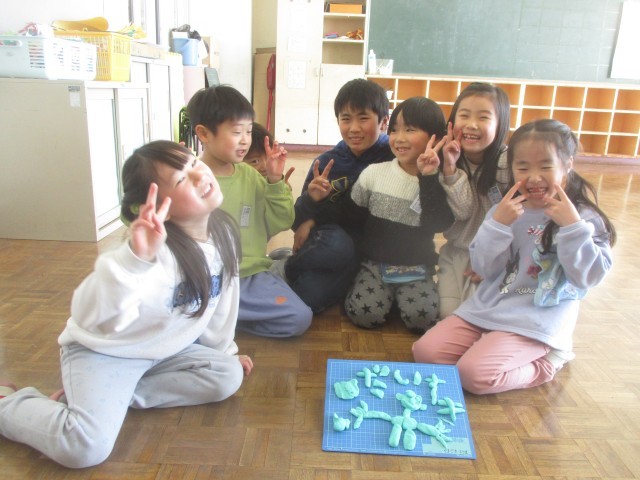 いつも優しくしてくれた6年生さんに、粘土の作品を作った子供がいます。「だいすき」の言葉が添えられて、6年生もうれしそうです。