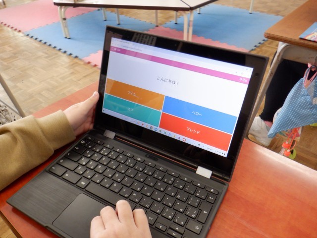 外国語活動で、1年間の振り返りをしました。クイズをしながら、これまでに学習した英語の表現や発音を振り返りました。