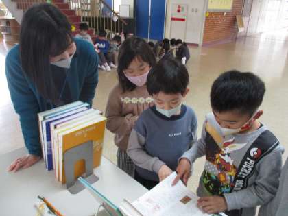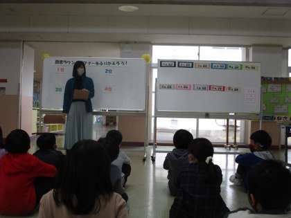 図書ラウンジのマナーと、本の探し方について、学校図書館司書の先生と一緒に学習しました。これは、この後の国語の学習「国語辞典の使い方」につながりますね。