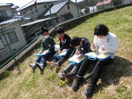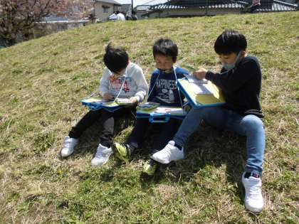 2年生は図画工作科の時間に「おはなみスケッチ」の学習をしました。