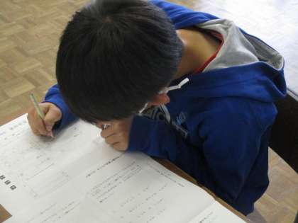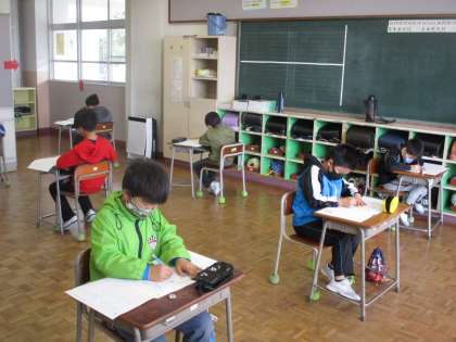 みんな集中しています。長い文章をよく読み、しっかりと答えようとする姿に、中学年らしさを感じます。