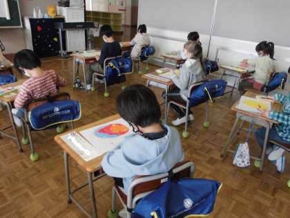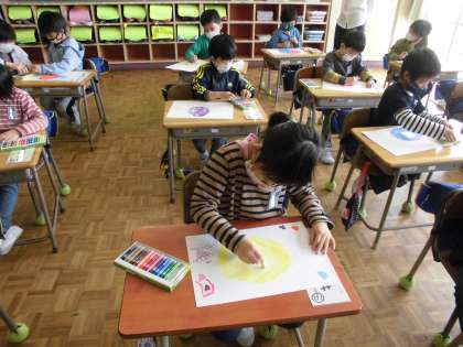 4月16日(金) 1年生 図画工作科「おひさま にこにこ」