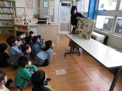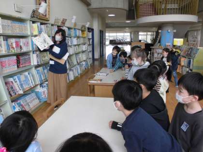 学校司書の先生に、図書ラウンジの使い方を教えてもらいました。いろいろな約束やどこにどんな本があるのかを教えてもらった後、初めて本の貸し出しを行いました。子供たちはたくさんの本に「どの本を借りようかな」「こんなおもしろそうな本があったよ」と胸をわくわくさせていました。