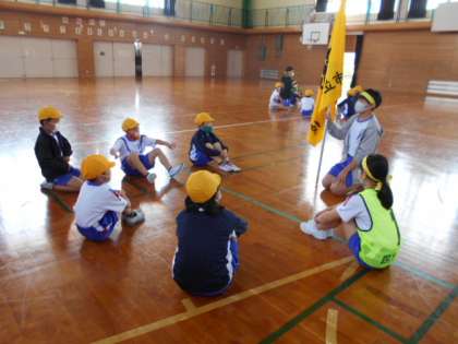 赤団は音楽室、白団は児童会室、青団はコモンスペース、黄団は体育館に分かれて行われました。