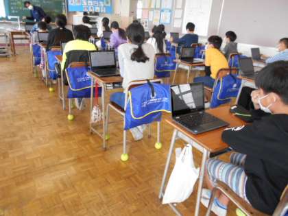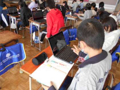 朝活動で計算練習をしたり、授業の場面で調べ活動に使ったりしています。6年生は、学級活動でclassroomを用い、意見を出し合っていました。