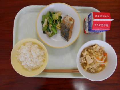 5月6日(木)の給食は、「ごはん、牛乳、サワラの西京焼き、おひたし、親子煮」でした。5月に入りました。好き嫌いなく食べて、運動会に向けて体力を付けましょう。