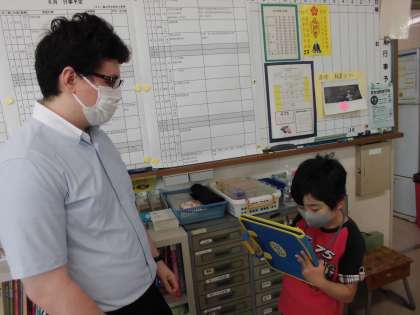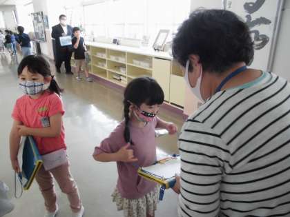 水曜日のスマイルタイムから、校内におられる先生方にお名前を聞いたり質問したりしています。最初は緊張していた子供たちでしたが、昨日今日のいきいきタイムや昼休みには、多くの子供たちが探検バッグを片手に「先生行ってきます」と意気揚々と教室を出ていっていました。
