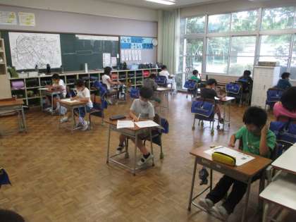 「学習のたしかめ」テストが終わりました。今年から4教科に増え、さらに、裏表のある200点テストとなりました。子供たちは、問題数の多さに苦戦しながらも、最後まで集中して取り組んでいました。よくがんばりましたね。返却されたテストを使って、自学ノートにおさらいをしておくのもいいですよ。
