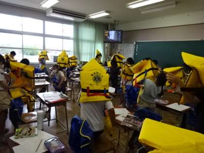 7月6日(火) 避難訓練でライフジャケットを着用した