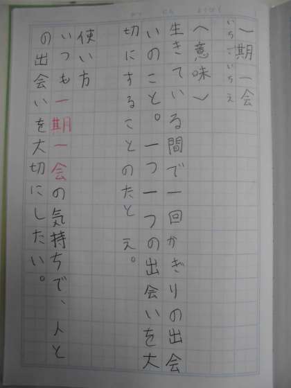 右側のノートは、四字熟語の意味と文例が書いてあります。