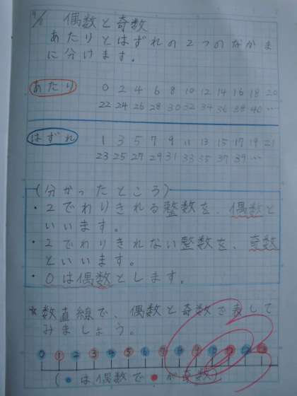 右側のノートは、算数の復習をしています。学校の授業の行ったことをもう一度ノートにまとめることで、頭の中が整理され、確実に理解できていくと思います。