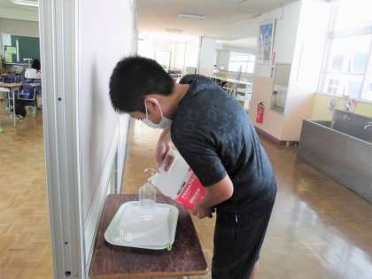 1週間ですぐになくなってしまう消毒用アルコールの補充、ほうきのゴミ取り。目立たない仕事ですが、学校のためにがんばっている姿がとても素敵です。