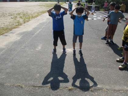 国語科は下の教科書に入りました。今日は、たいへんよいお天気だったので、「ちいちゃんのかげおくり」の物語を読んだ後、実際に、かげおくりを体験してみました。