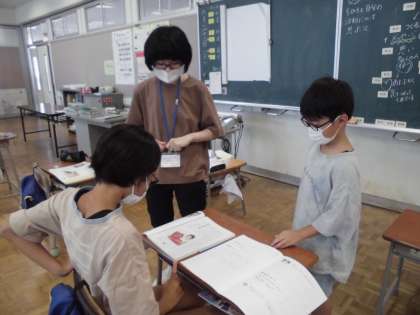 5年生は、道徳の学習で「わたしにできること」という主題で話合いを行いました。総合的な学習の時間で取り組んでいる「笑顔いっぱいプロジェクト」の活動の中で感じた思いと登場人物の思いを比べながら考えていました。