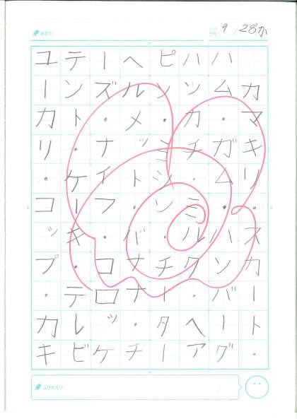 真ん中のノートは、カタカナの練習を丁寧にしています。いろいろな言葉を覚えています。