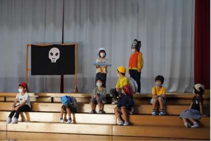 校内発表会では、程良い緊張感の中、「ピーターパンのいる島」の劇をしました。自分のせりふや場所をしっかり覚えて自信を持って動けるようになってきました。あと二日間で振り付けや待つ姿勢をがんばりたいと考えている子供たちです。しっかりと練習して、よりよい劇になるようにがんばります!