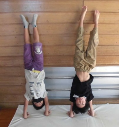 2枚目は朝トレーニングで逆立ちをしているところです。2年生は、何事にもチャレンジしてみようという雰囲気があります。
