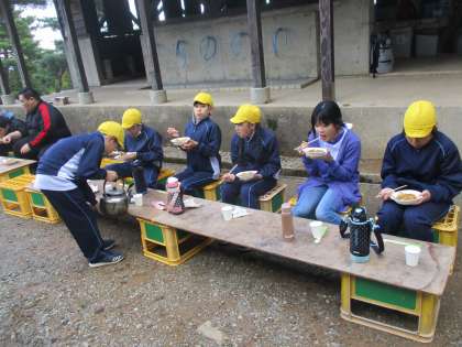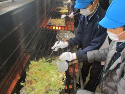 野外炊飯では焼きそばを作りました。火起こしもうまくいき、おいしい焼きそばができあがりました。