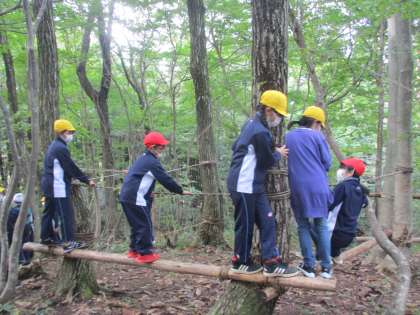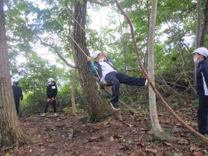 森の遊具で遊びました。森の中を歩くのも楽しかったです。