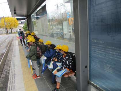 富山市役所を後にした子供たちは、市内電車に乗って、環水公園へ向かいました。富山駅の下を通り過ぎる際には、電車やバスを利用する人がたくさん集まっていることが分かりました。そして、富岩運河水上ラインに乗り、再び岩瀬へ向かいました。上から見たり下から見たり、いろいろな見方で、富山市を見つめることができました。